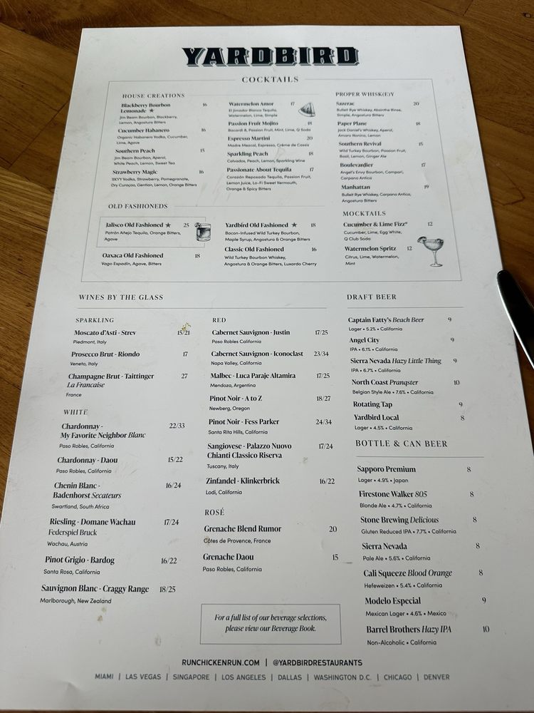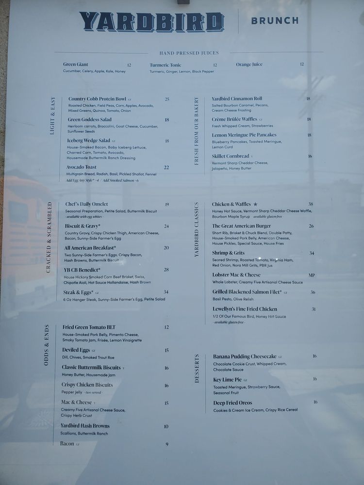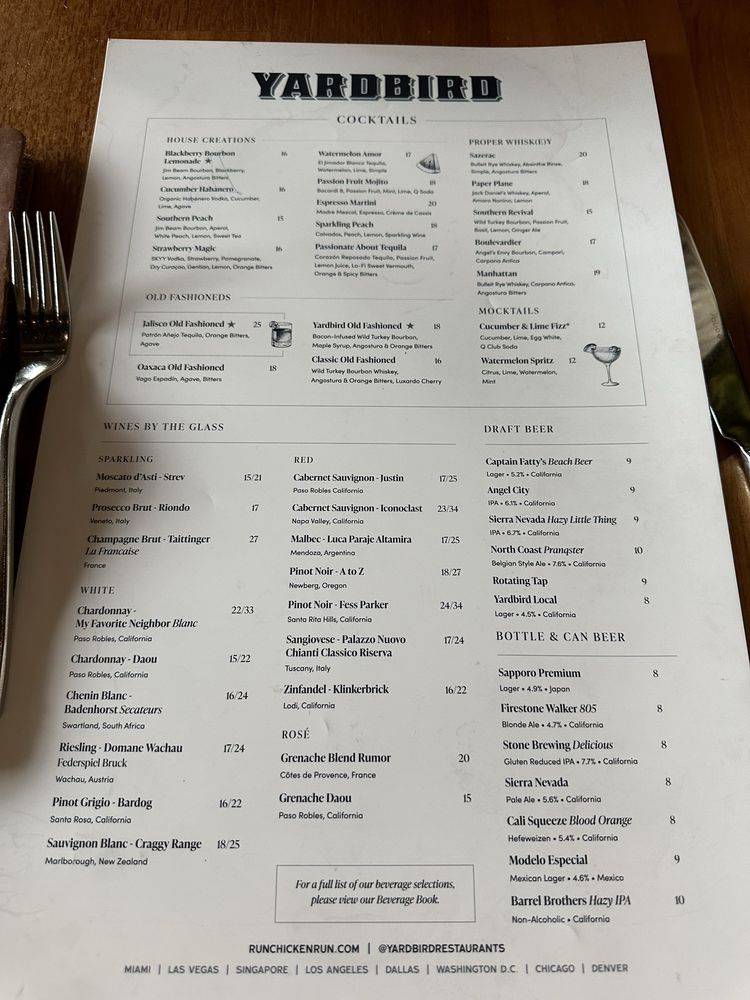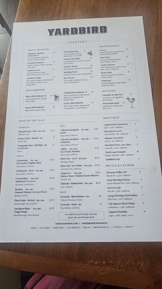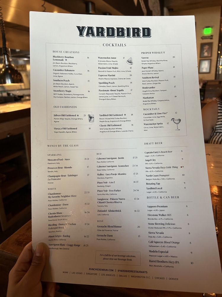 Yardbird, located in Los Angeles, offers a diverse menu with options for vegan and limited vegetarian diets. The restaurant boasts a casual, trendy, and classy ambiance, perfect for any occasion. With features like outdoor seating, free Wi-Fi, and waiter service, Yardbird ensures a comfortable dining experience. Customers rave about the flavorful fried chicken, honey hot sauce, shrimp n' grits, and the signature chicken and waffles. The Sunday brunch receives high praise for its delicious offerings and attentive service. Whether you're craving classic Southern comfort food or innovative twists on traditional dishes, Yardbird delivers exceptional quality and a welcoming atmosphere. Don't miss the deviled eggs or the crispy, moist fried chicken paired with the unique honey hot sauce. It's no wonder customers keep coming back to enjoy the exquisite dining experience at Yardbird.