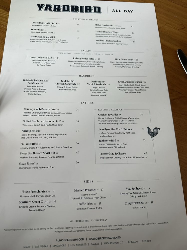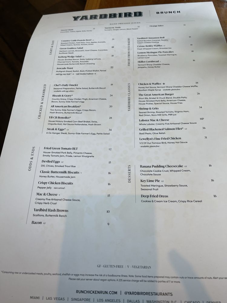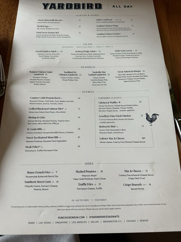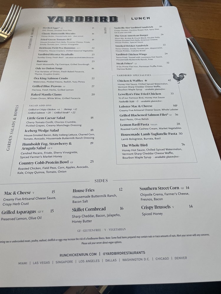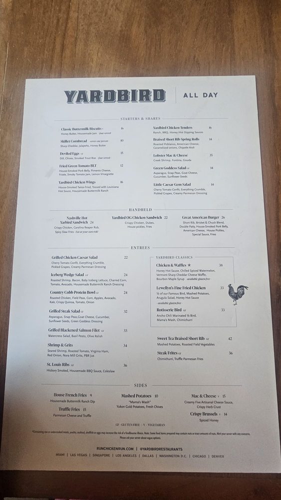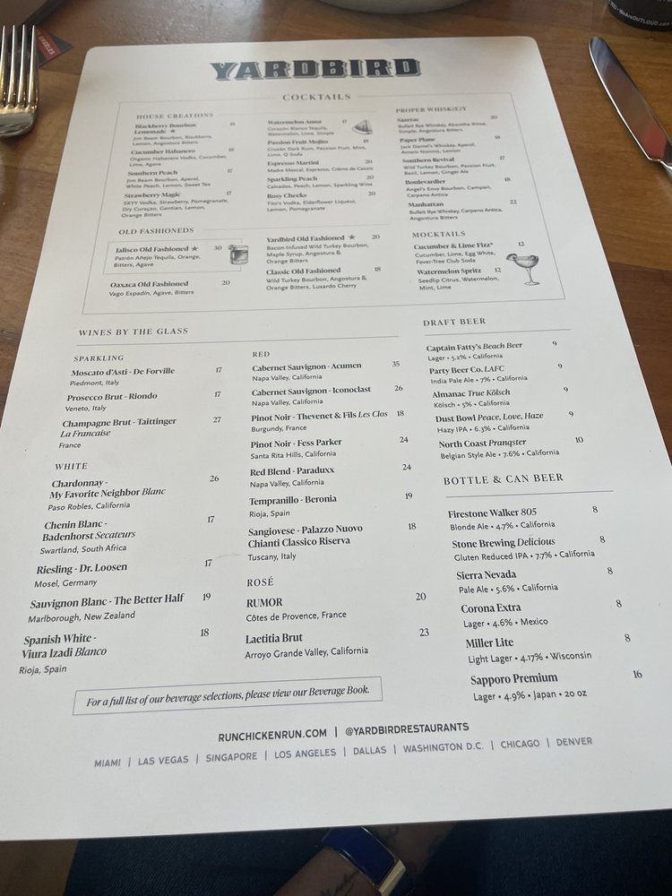 Yardbird, located in Los Angeles, offers a diverse menu with options for vegan and limited vegetarian diets. The restaurant boasts a casual, trendy, and classy ambiance, perfect for any occasion. With features like outdoor seating, free Wi-Fi, and waiter service, Yardbird ensures a comfortable dining experience. Customers rave about the flavorful fried chicken, honey hot sauce, shrimp n' grits, and the signature chicken and waffles. The Sunday brunch receives high praise for its delicious offerings and attentive service. Whether you're craving classic Southern comfort food or innovative twists on traditional dishes, Yardbird delivers exceptional quality and a welcoming atmosphere. Don't miss the deviled eggs or the crispy, moist fried chicken paired with the unique honey hot sauce. It's no wonder customers keep coming back to enjoy the exquisite dining experience at Yardbird.